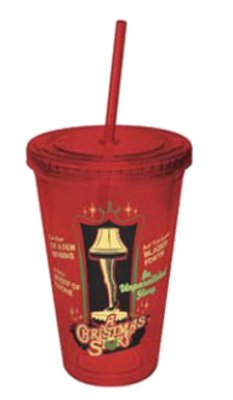 A Christmas Story Leg Lamp Red Travel Cup The snap of a few sparks, a quick whiff of ozone, and the lamp blazed forth in unparalleled glory. . . Pay homage to Old Man Parker's prestigious honor with this red tumblr from A Christmas Story, with the iconic leg lamp alongside the narrator's recollection of its majesty in a collage print on the side. Made from heavy plastic with matching screw-on top and straw....